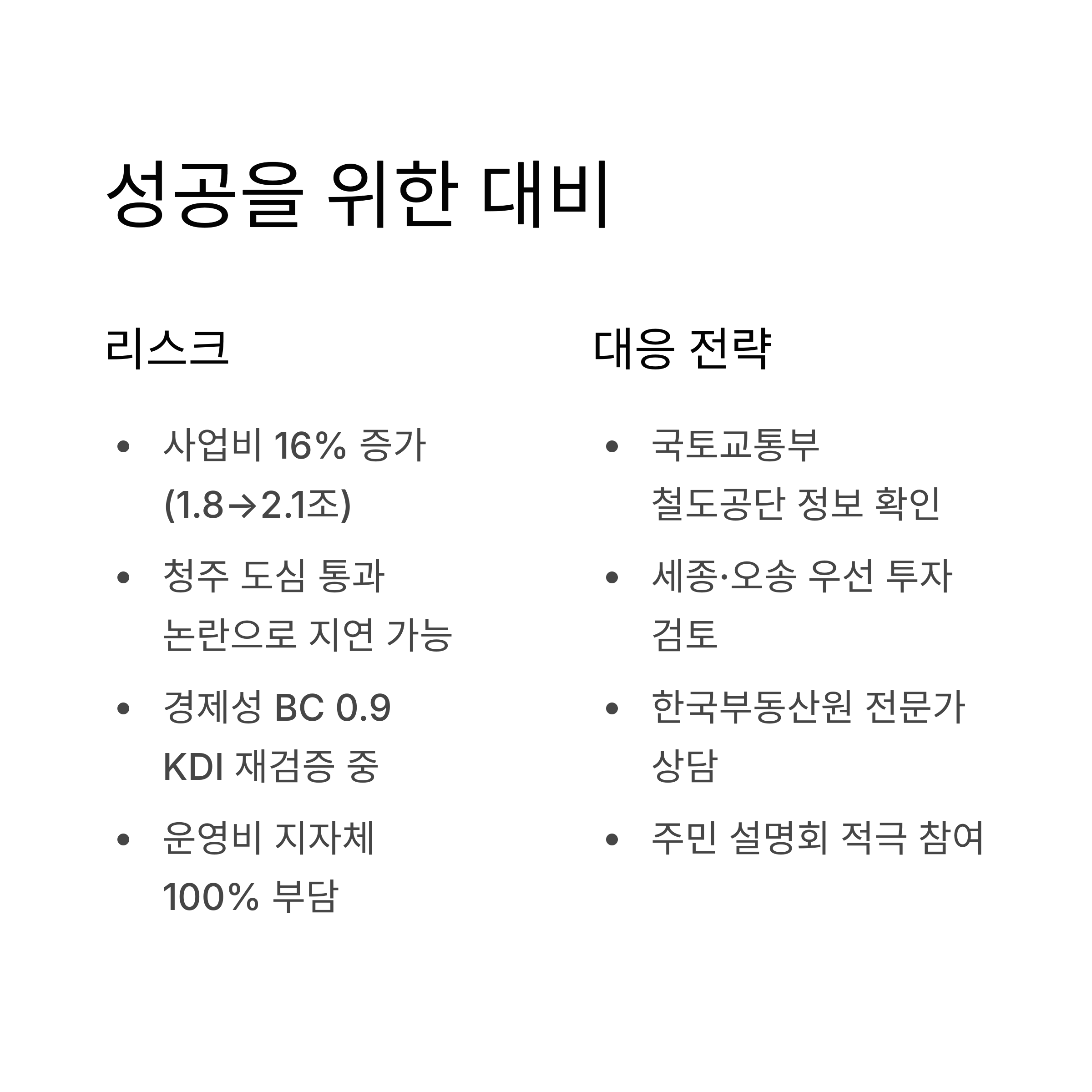 사업비·일정 변화 추적. - 지역별 투자 조정: 청주 도심 통과 불확실성 대비,