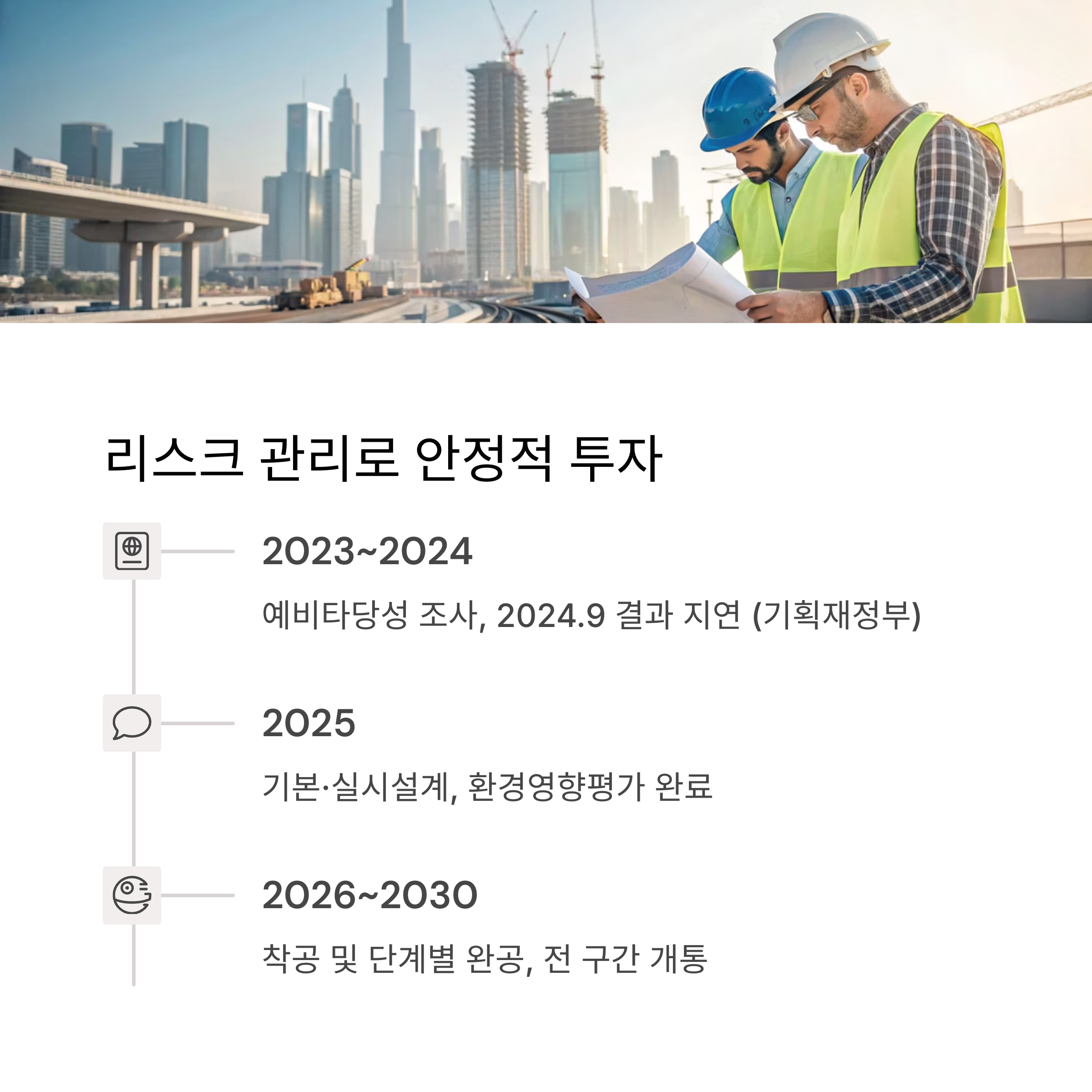 • 2026년: 예비타당성 조사 통과 후 착공,
