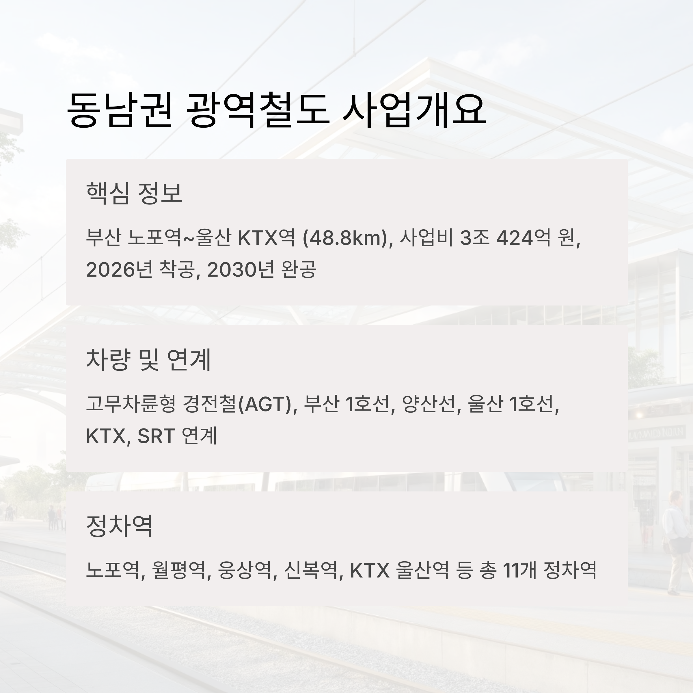• 향후 계획: 동남권 순환 광역철도(울산역~김해 진영, 51.4km)와 연계,