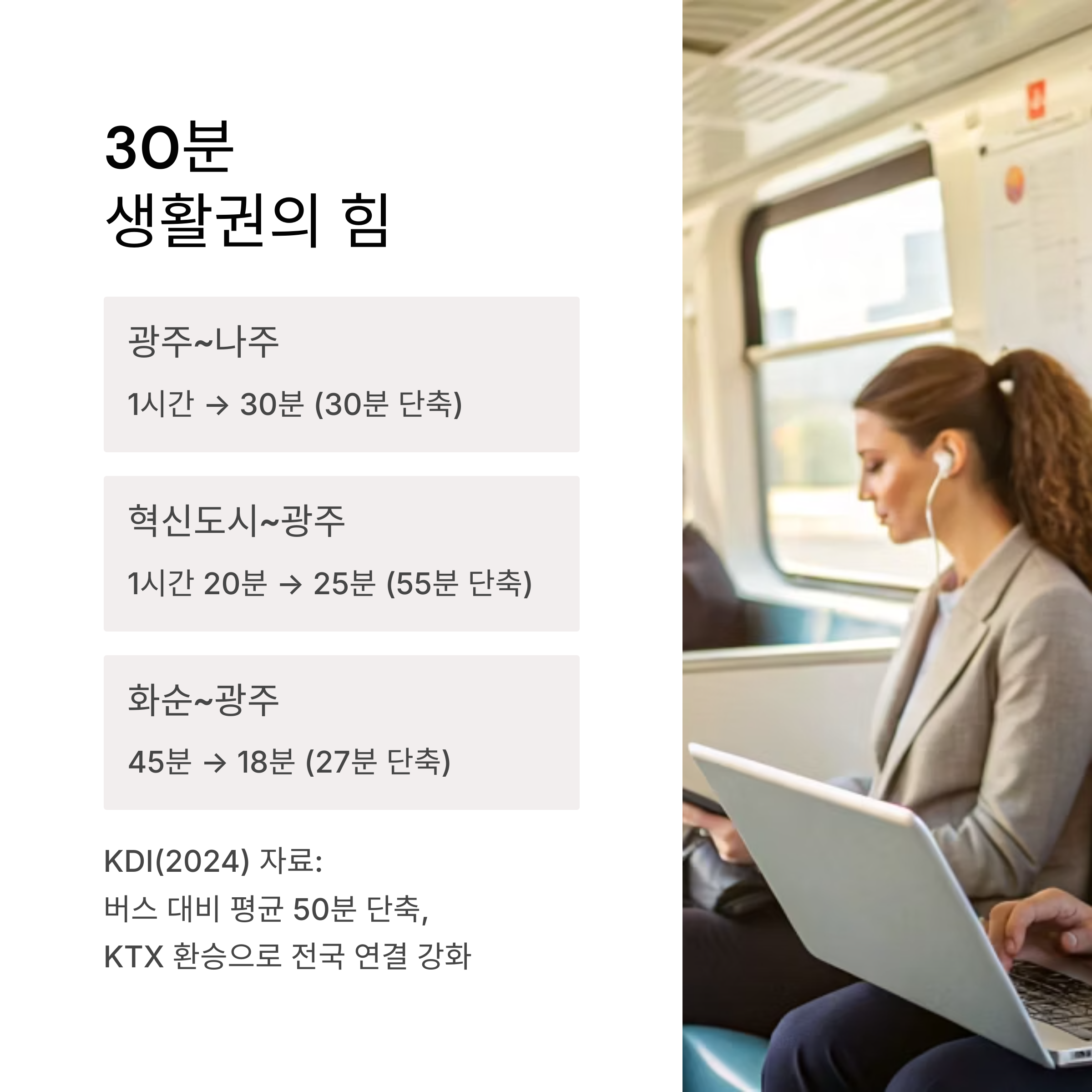 → 25분, 공공기관 근로자 이동 효율 UP. - 나주역: 나주~광주역 1시간