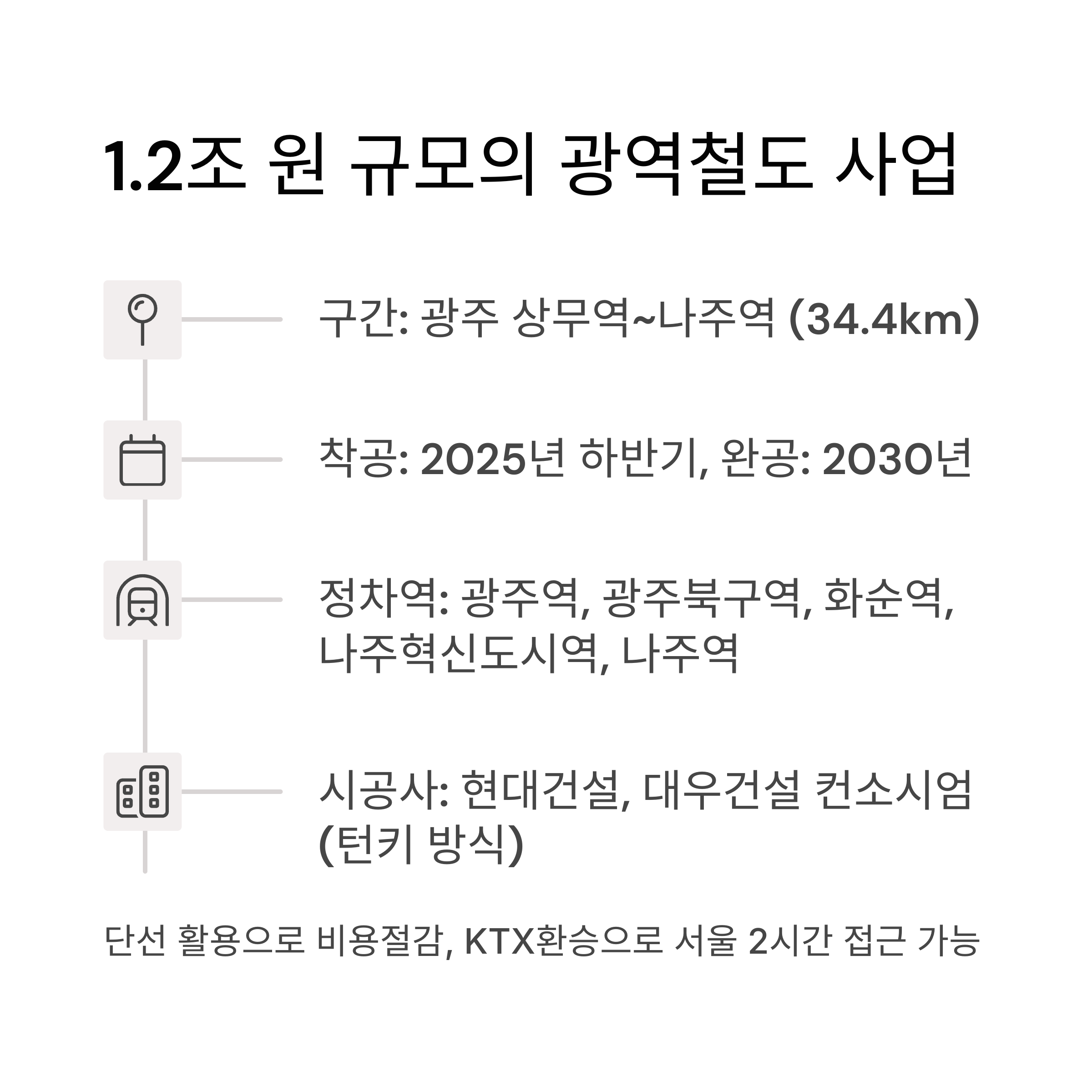 | 공사 지연 | 1~2년 지연 가능 | 턴키 방식, 광주 구간 우선 |