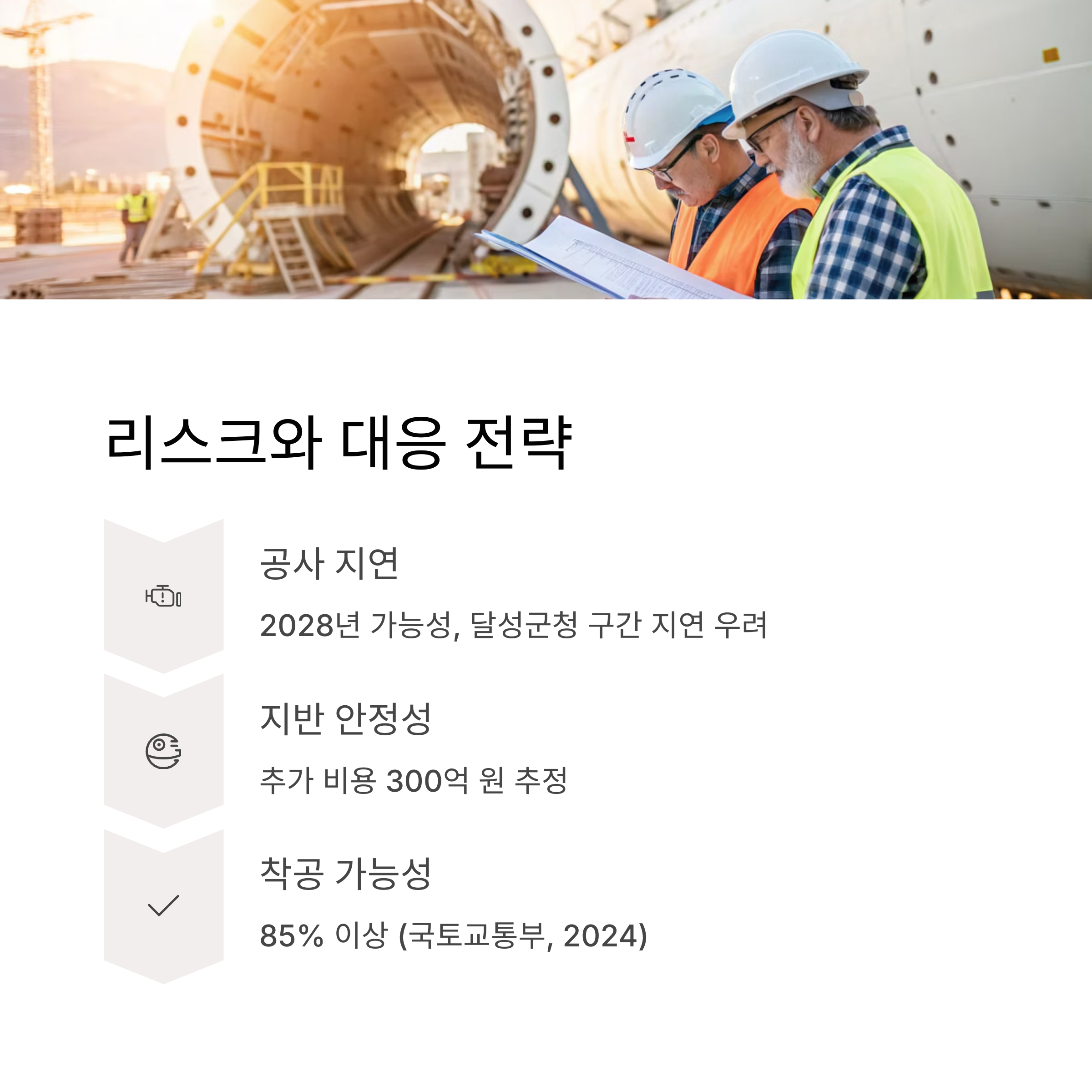 달성군청 구간 추가 비용 300억 원, 공기 지연 |