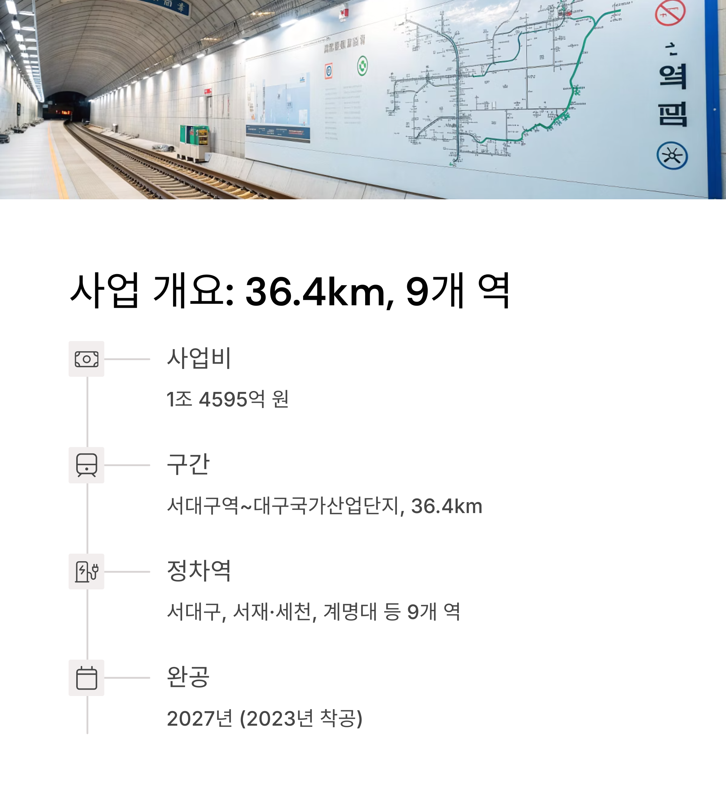 | 구간 | 서대구역 ~ 대구국가산업단지 (36.4km) |