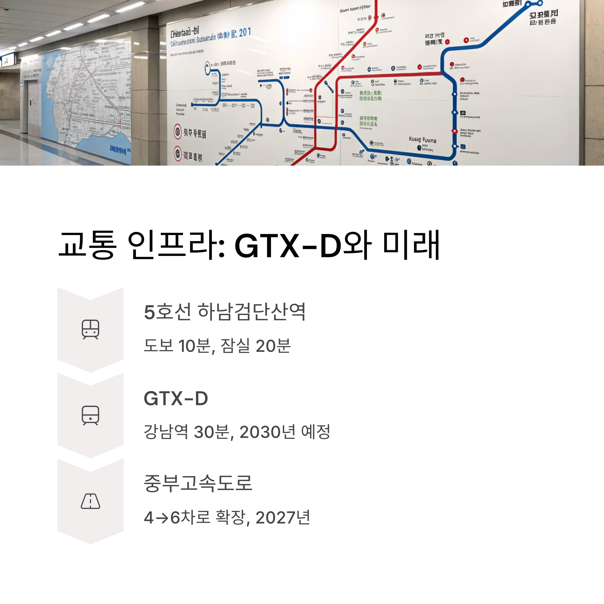 지하철 5호선 하남검단산역(도보 10분), GTX-D(2030년 예정),