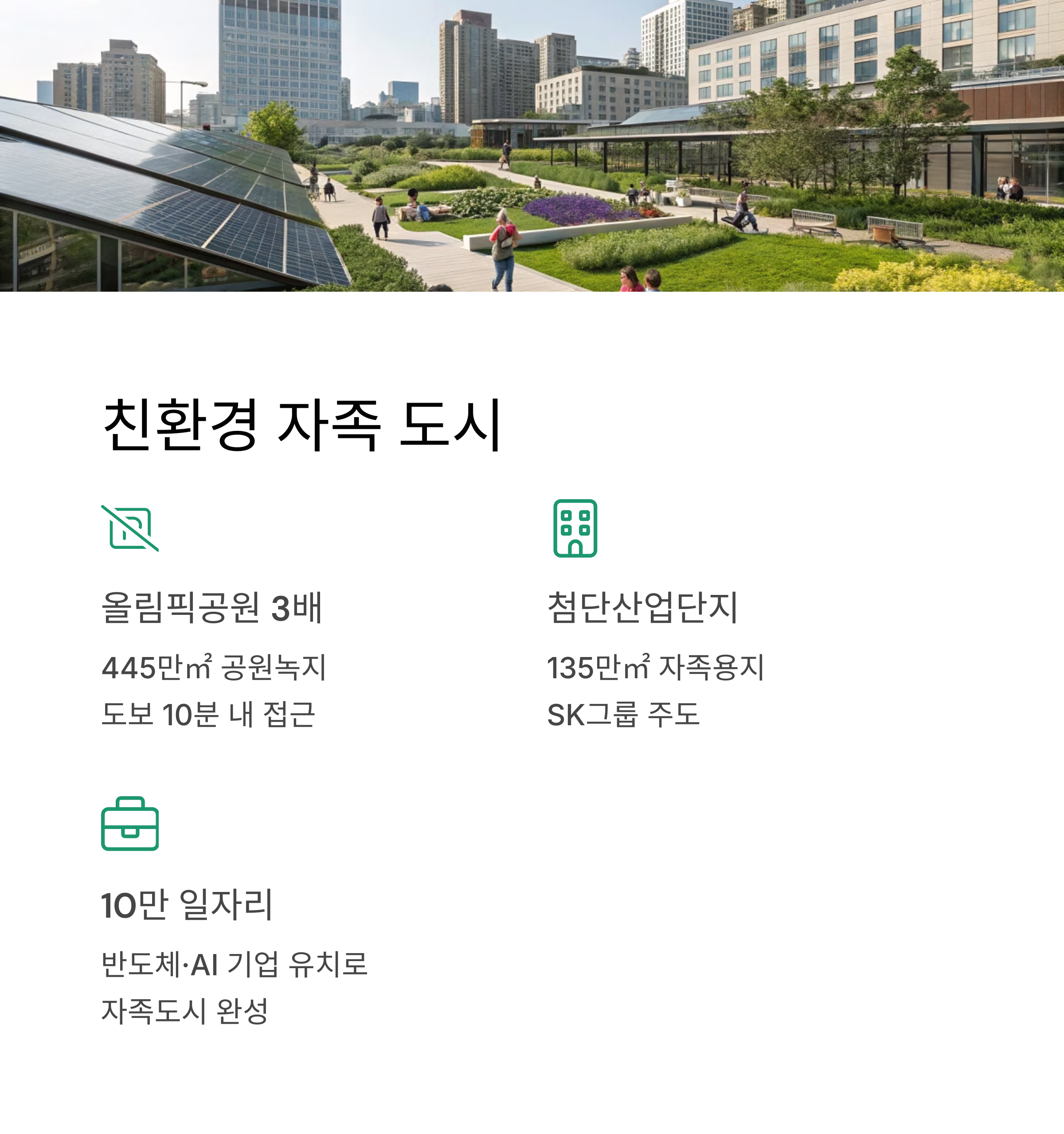 '친환경 자족 도시'로, 445만㎡ 공원녹지(부지 35%)가