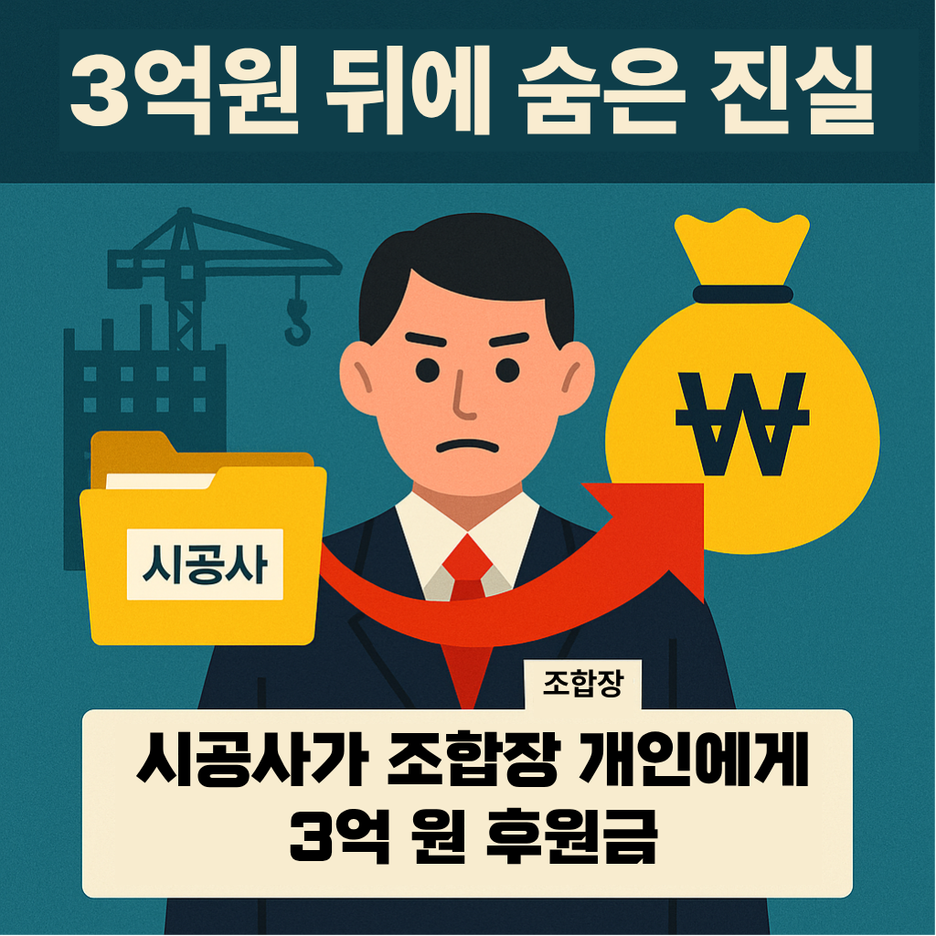 선정된 시공사가 조합장 개인 계좌로 후원금 3억원을 보낸 거였어요!