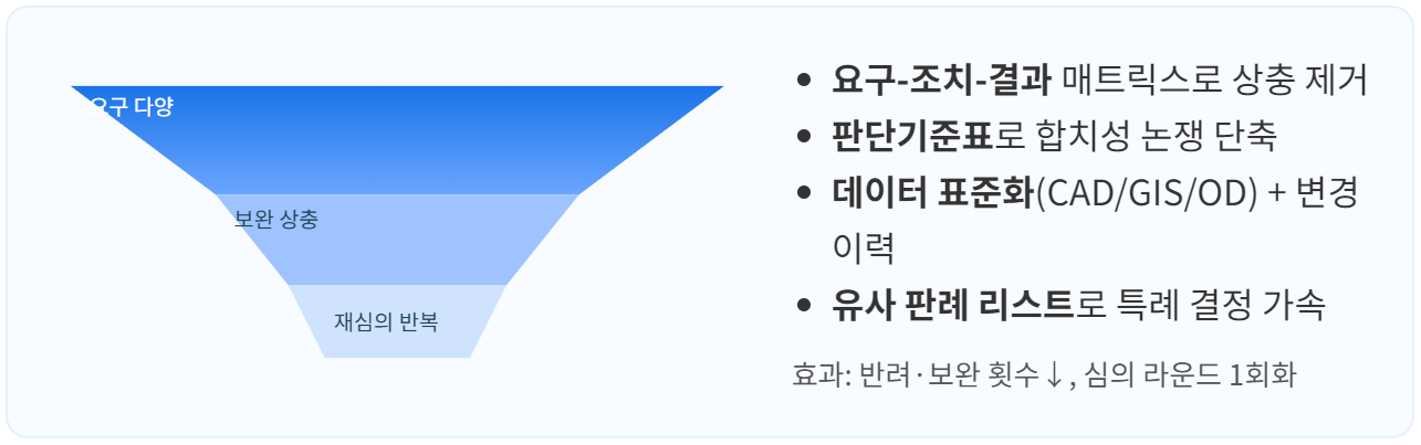 목표: 초기부터 부서·위원회 요구를 동시화해 재심의 최소화. 기대: 예측 가능한 일정, 공공성+사업성 균형.