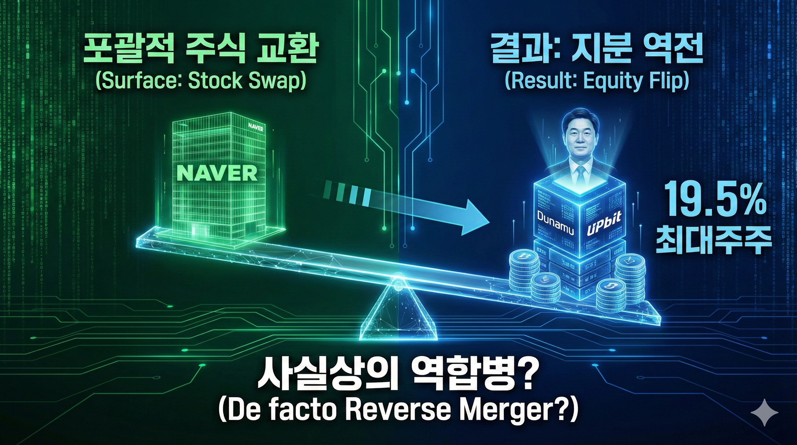 네이버가 경영권을 유지해야만 두나무의 연간 약 1조 원에 달하는 막대한 영업이익을 자사의 재무제표에 반영할 수 있습니다. 이것이 이번 딜을 성사시킨 네이버의 가장 큰 '속내' 중 하나입니다.