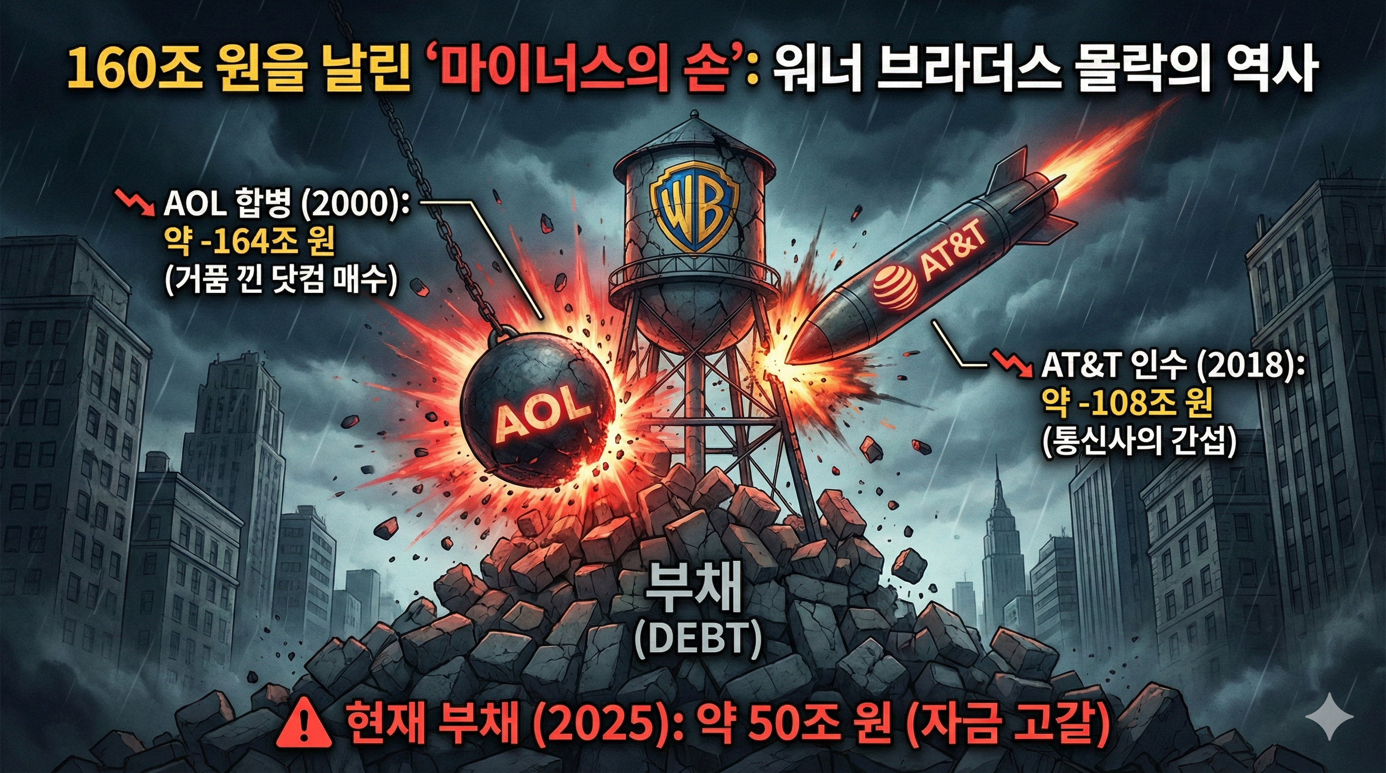 <배트맨>, <해리 포터> 같은 최고의 IP를 가지고도 잘못된 주인들을 만나 빛을 잃어가던 워너. 결국 50조 원이라는 빚더미 위에서, 과거 자신들이 무시했던 넷플릭스에게 구조 요청을 보내는 아이러니한 상황이 연출된 것입니다.