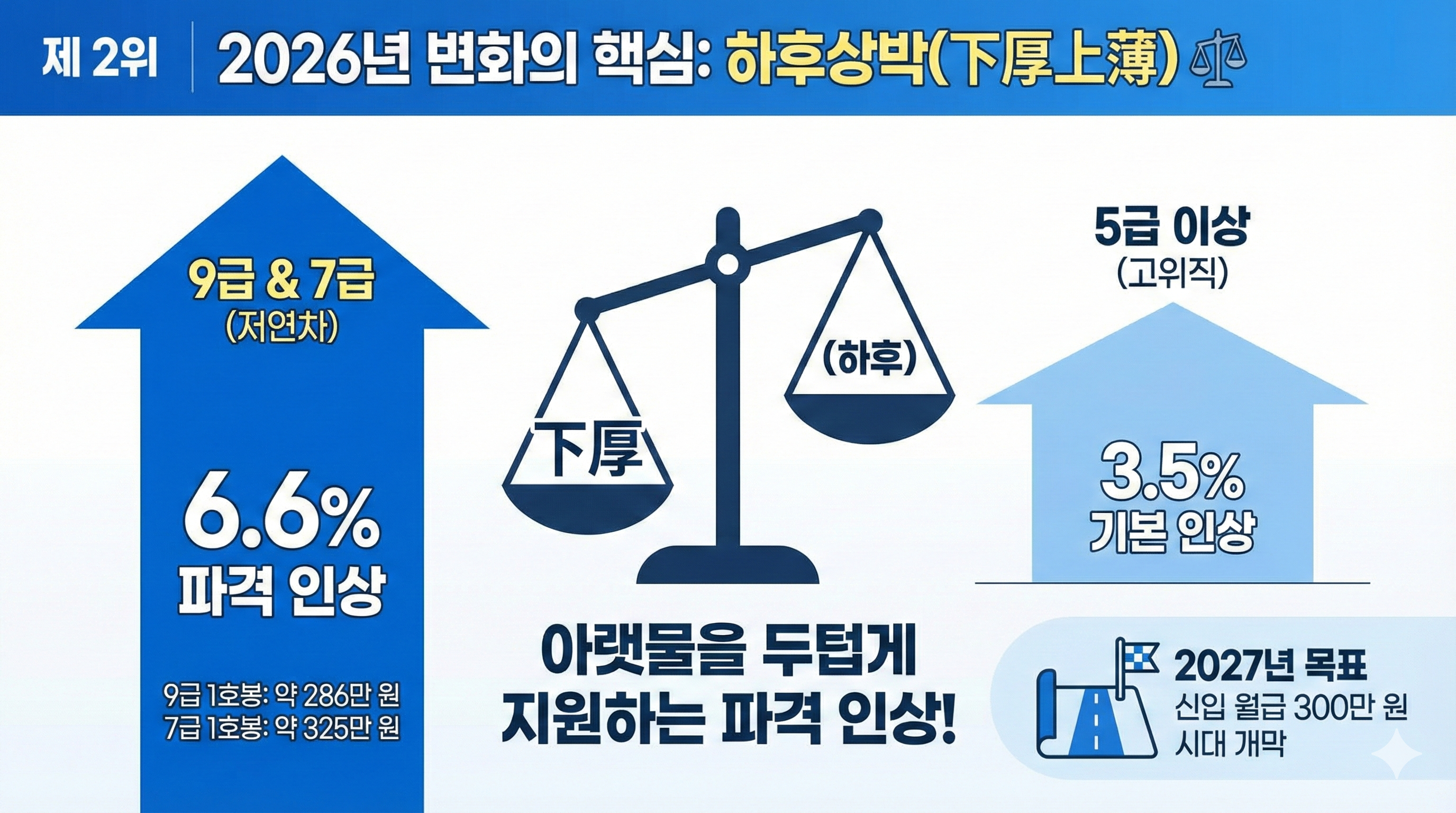 - 인상폭: 9급 등 저연차 6.6% 파격 인상 (기본+추가)