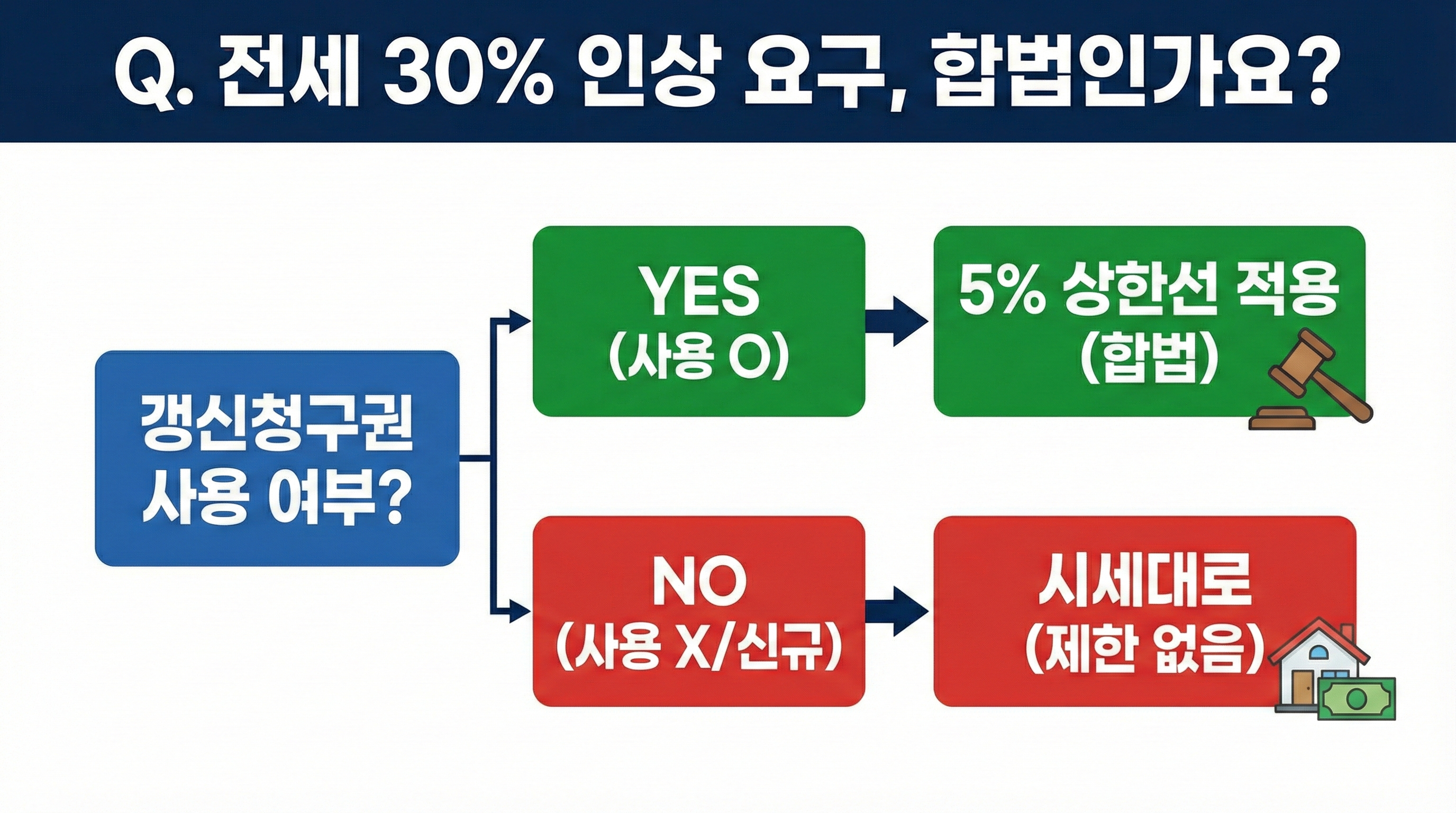 - 전세금 인상률 5% 상한선은 갱신청구권 사용 시에만 적용됩니다.