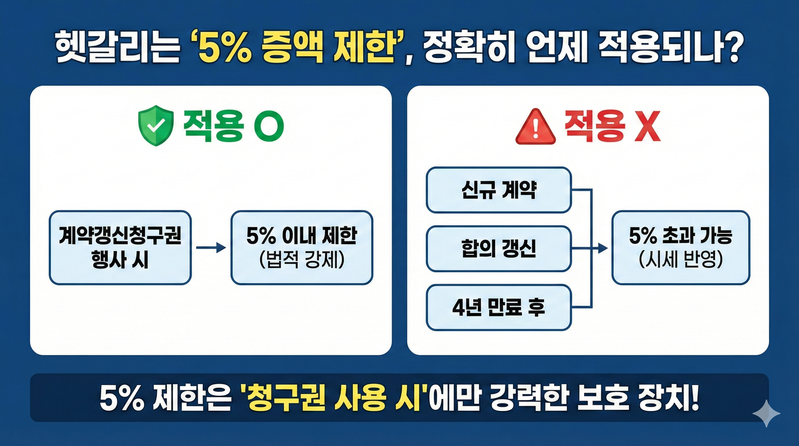 💡 핵심 요약: 5% 증액 제한은 '계약갱신청구권 행사 시' 적용!