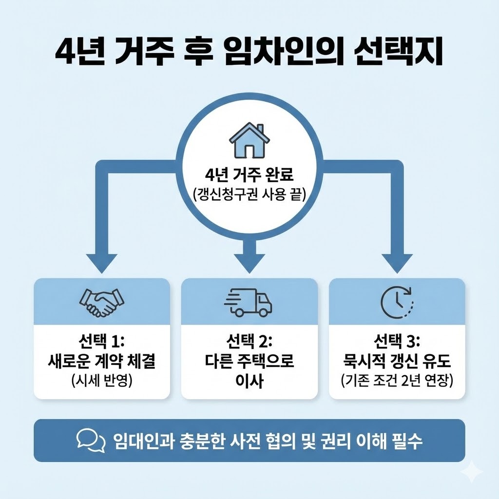 4. 4년 이후 장기 거주는 임대인과의 '새로운 합의' 또는 '묵시적 갱신'을 통해 이루어집니다.