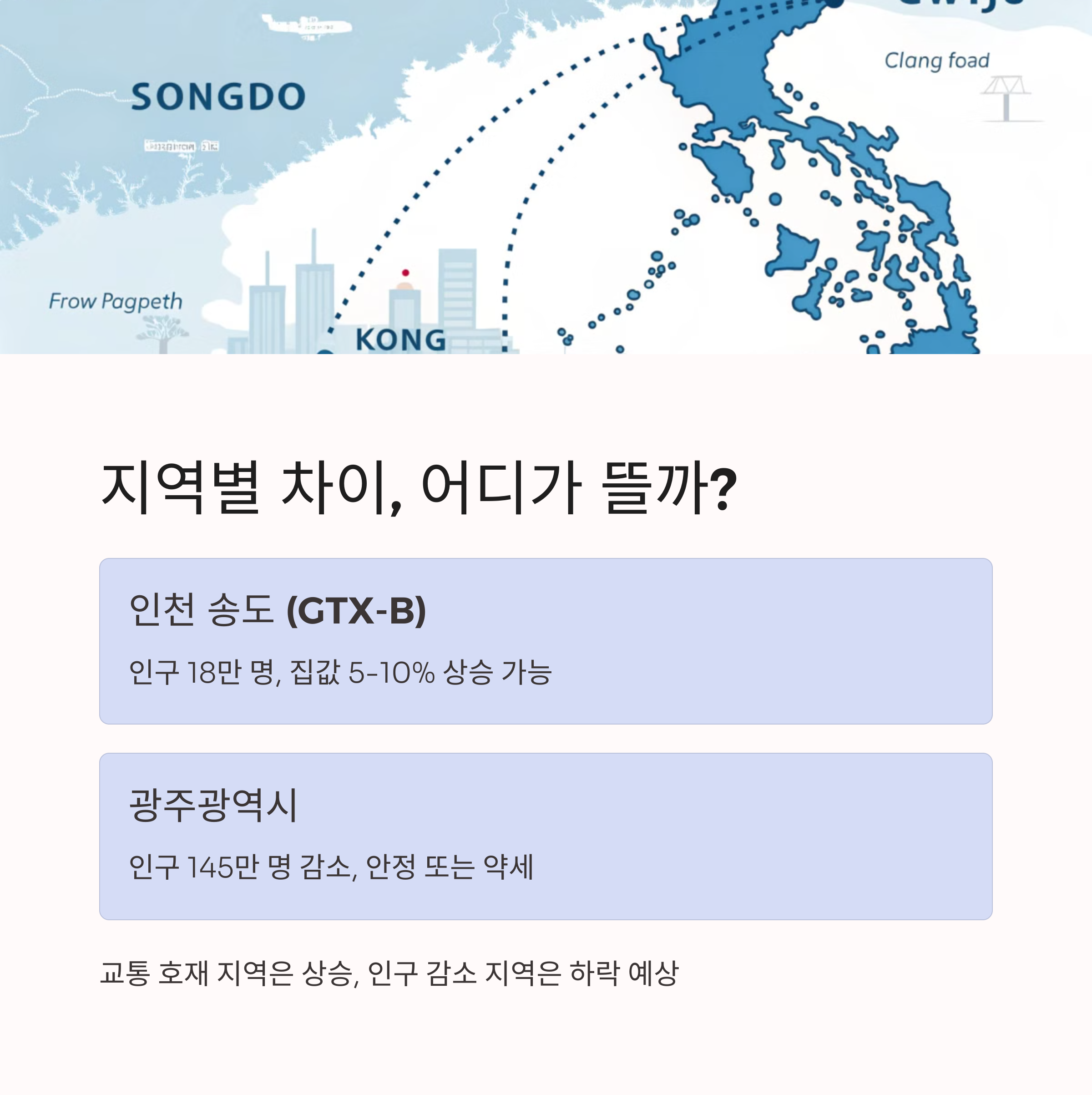 반면, 지방 광주광역시는 2024년 인구가 145만 명으로 줄며 집값이 약세예요