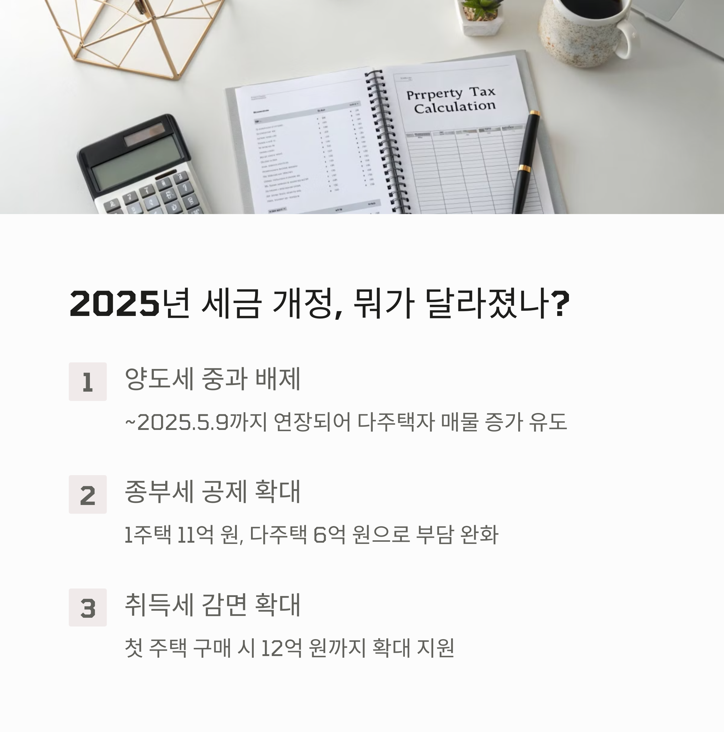 2025년 부동산 세금 개정은 크게 세 가지로