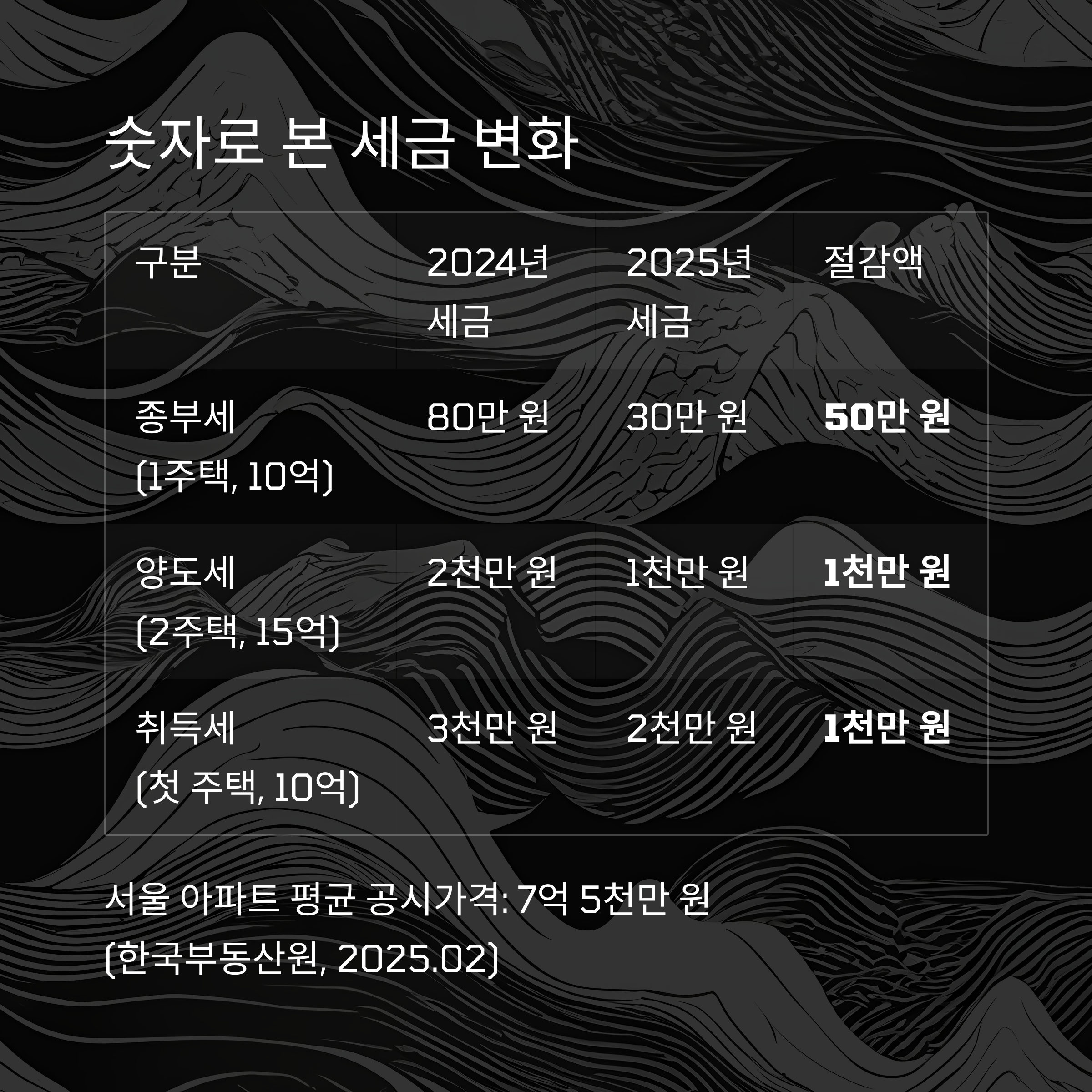 | 구분 | 2024년 세금 | 2025년 세금 | 절감액 |