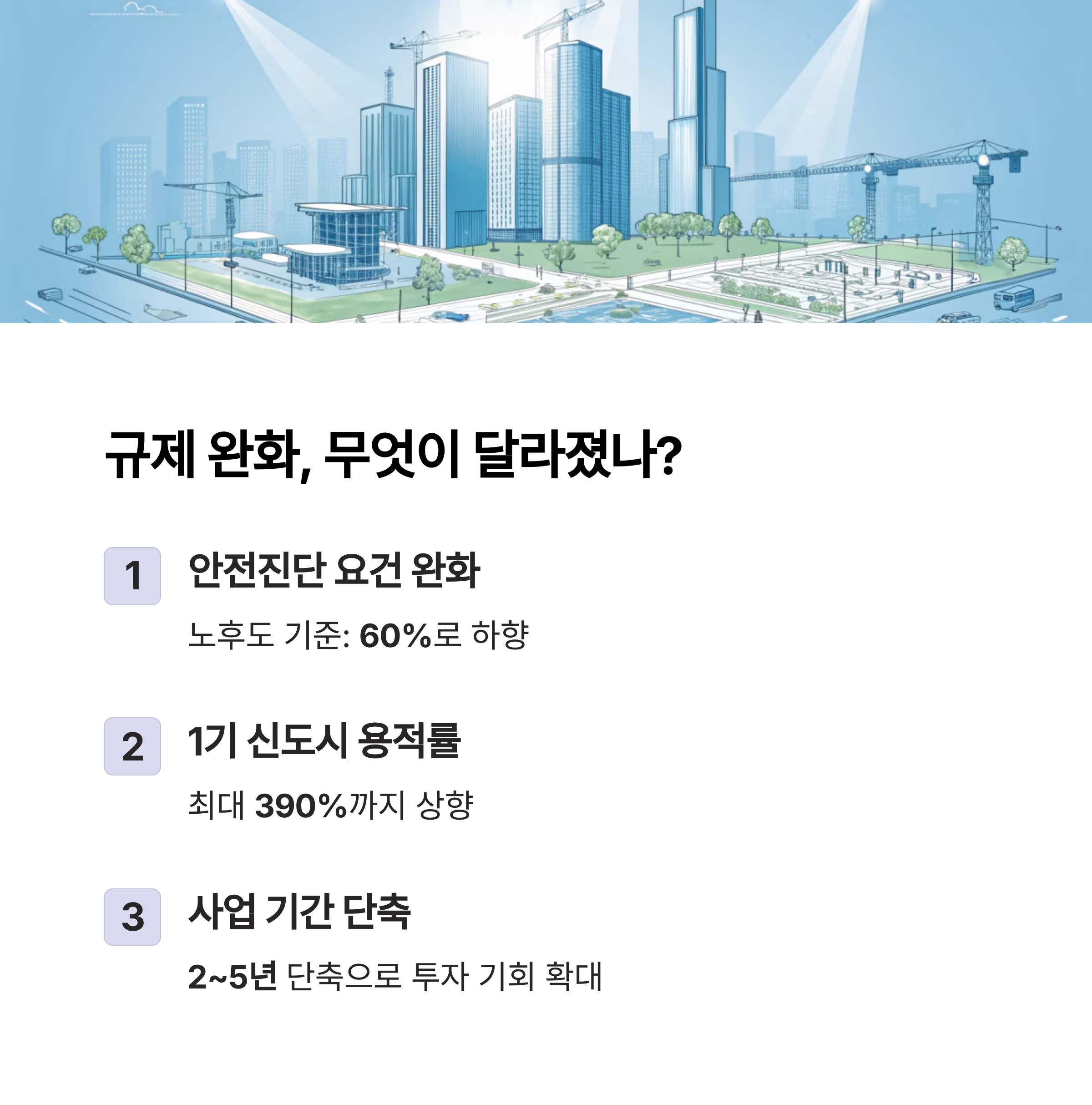 안녕하세요, "도시이야기"입니다.낡은 아파트가 새롭게 태어날 기회가 열리고 있어요.2024년 재건축 규제 완화로 어떤 변화가 생겼는지,내 아파트에도 기회가 올지 숫자와 사례로 알아볼게요.목