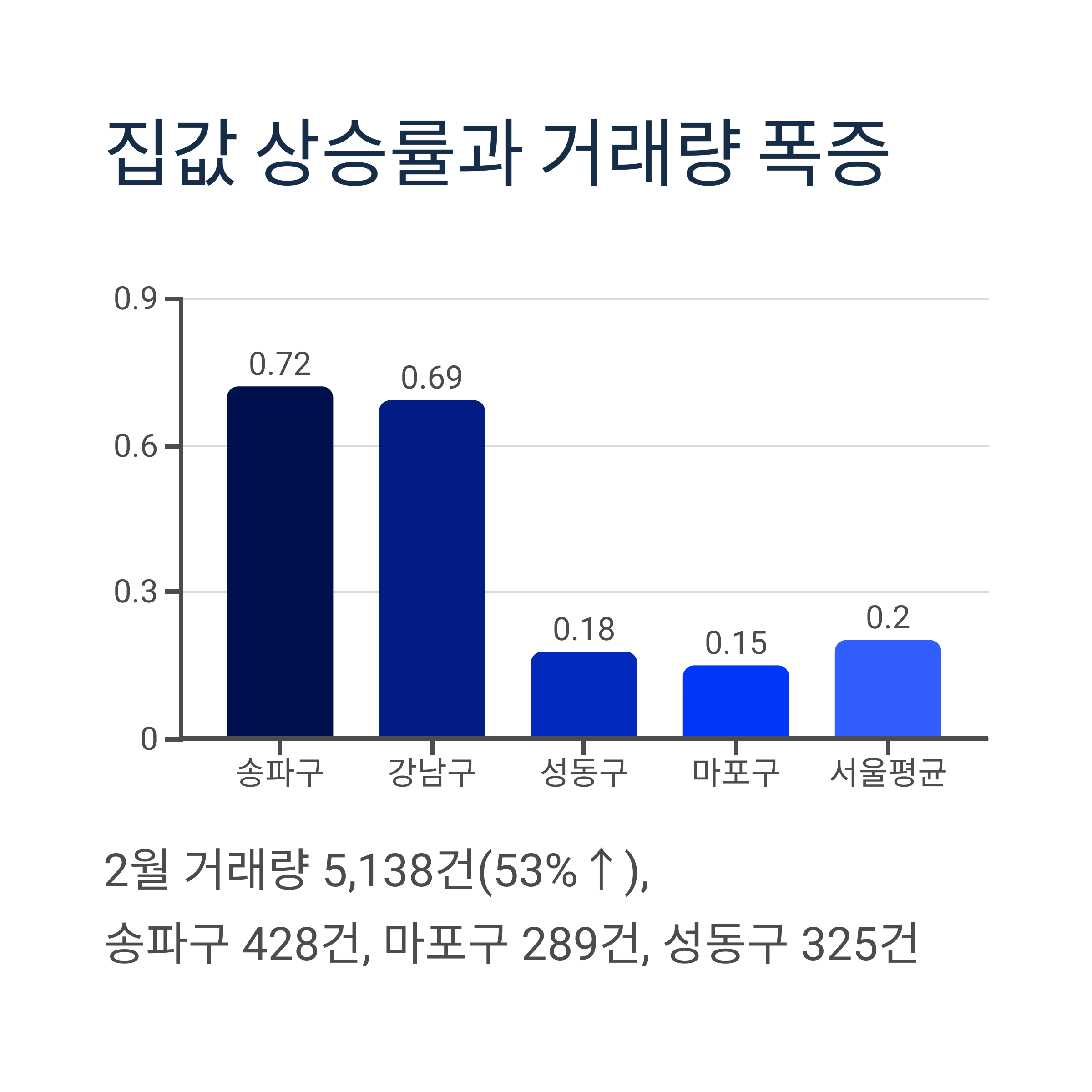 2월 서울 거래는 **5,138건**으로, 1월(3,355건) 대비