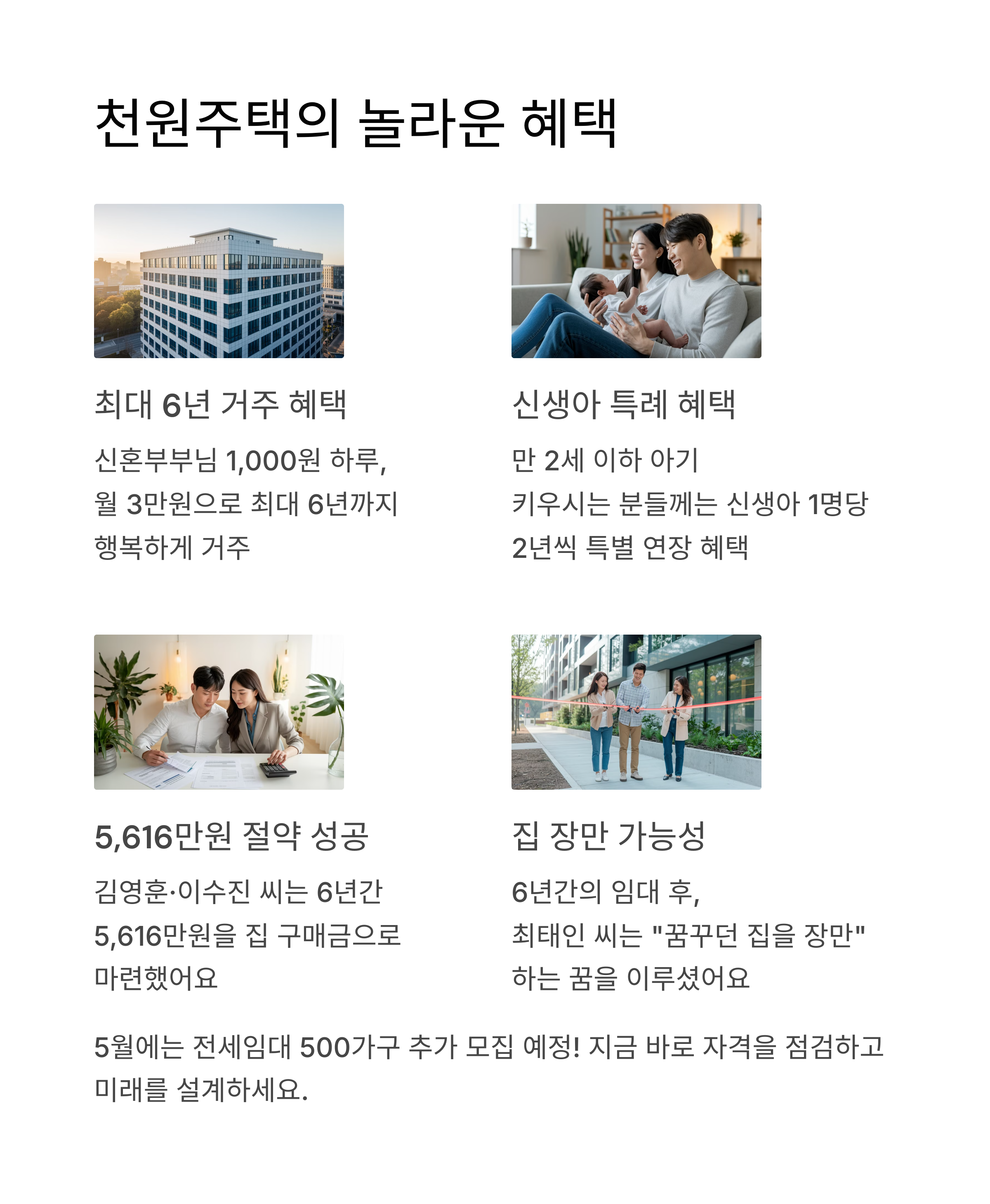 4. 천원주택 혜택: 하루 1,000원으로 내 집 마련 가능?