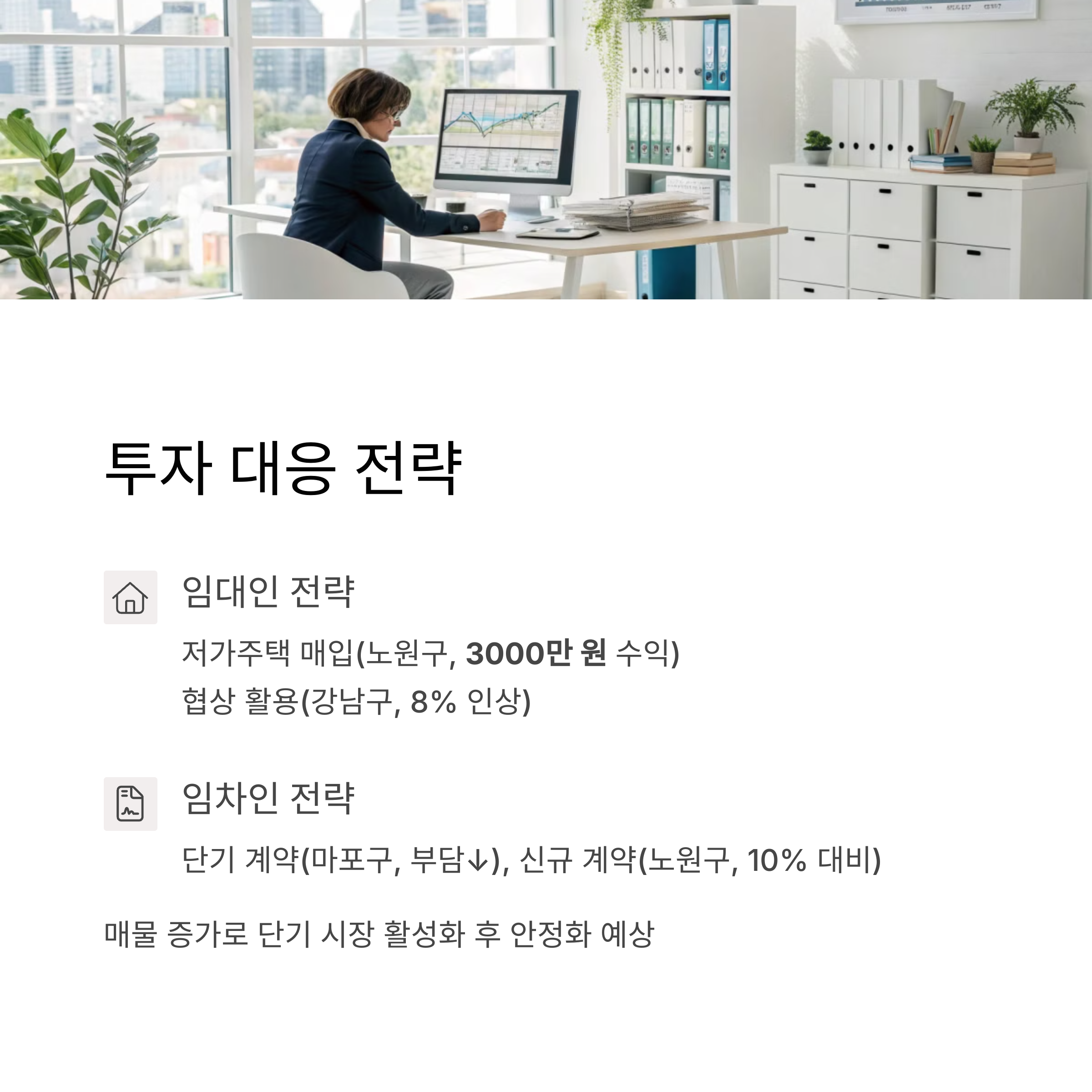 임대인 저가주택 매입 노원구 20평, 3억 원 매입, 연 3000만 원 수익