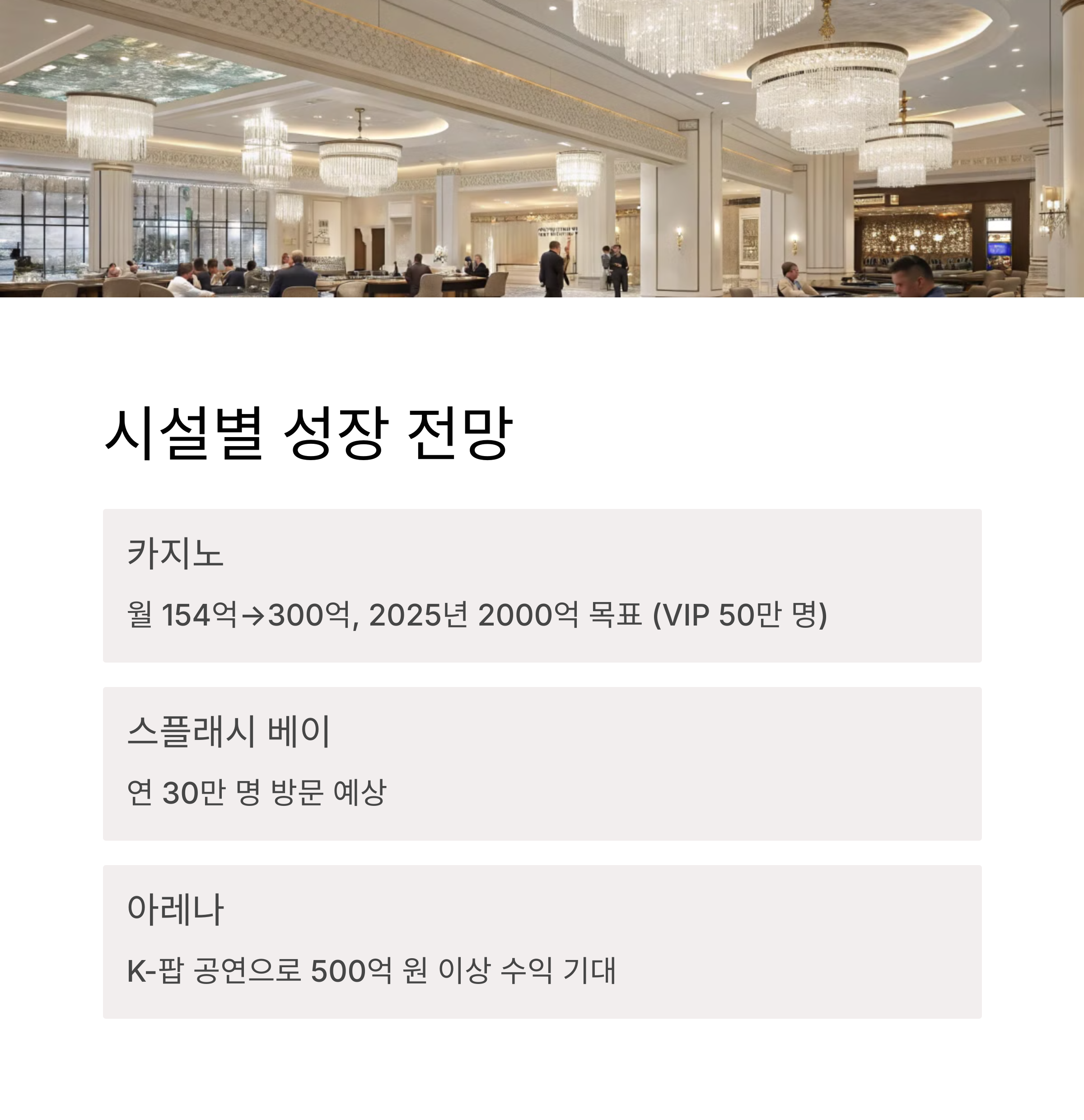 | 카지노 | 1079억 원 | 2025년 2000억 원 목표 |