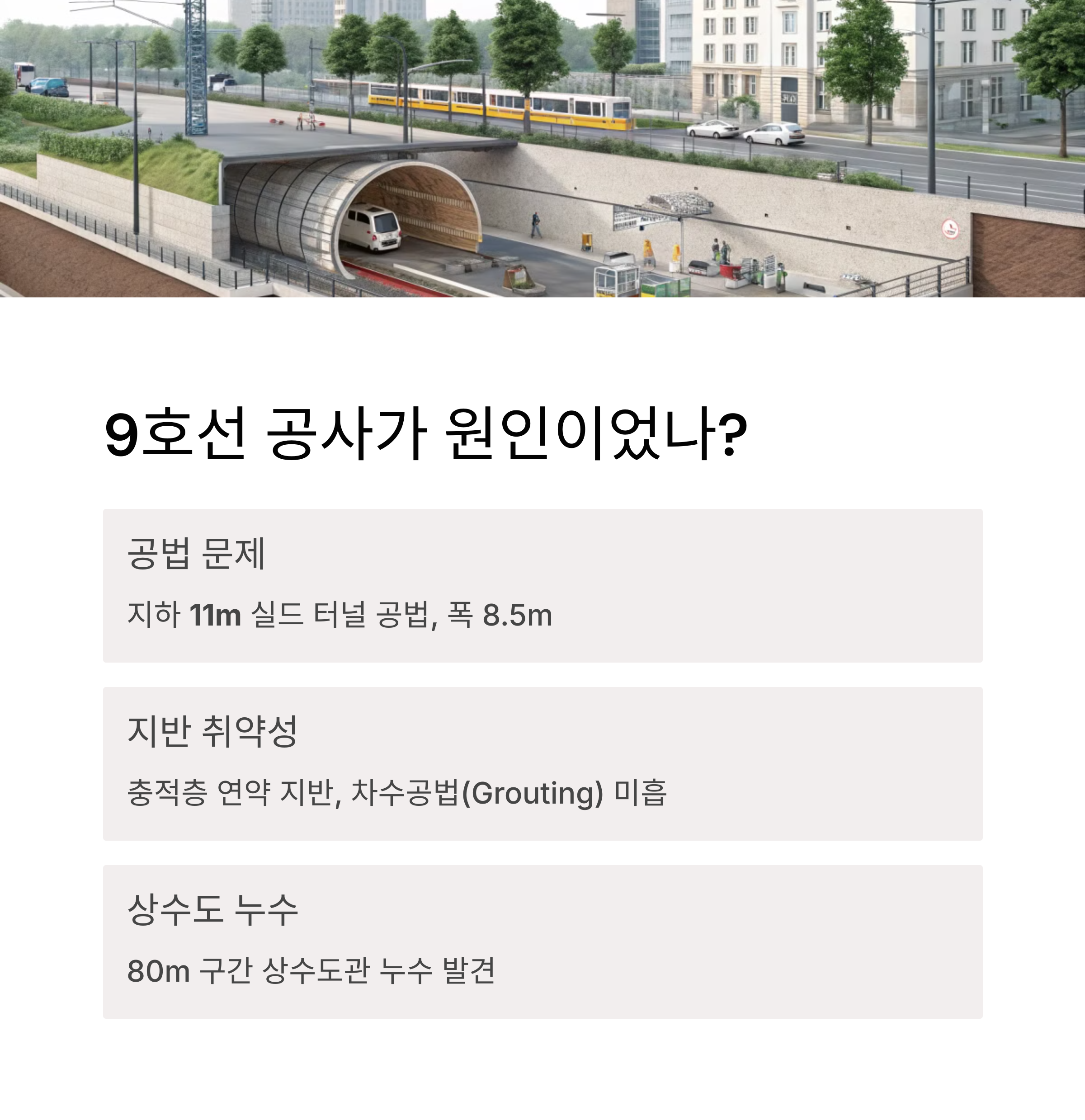 9호선 연장공사 싱크홀 원인 분석이 끝나면