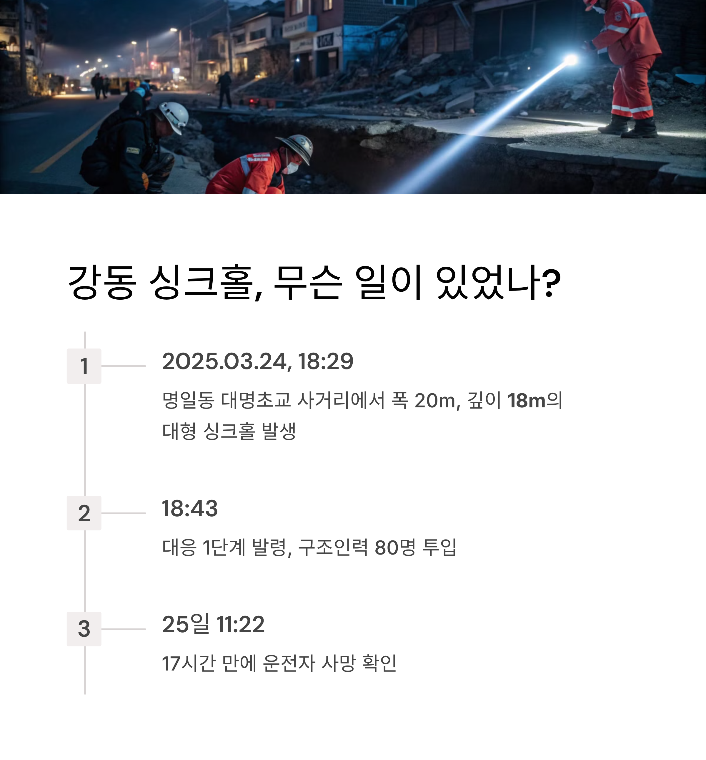 강동 싱크홀 사고가 일어난 과정을 정리했어요: