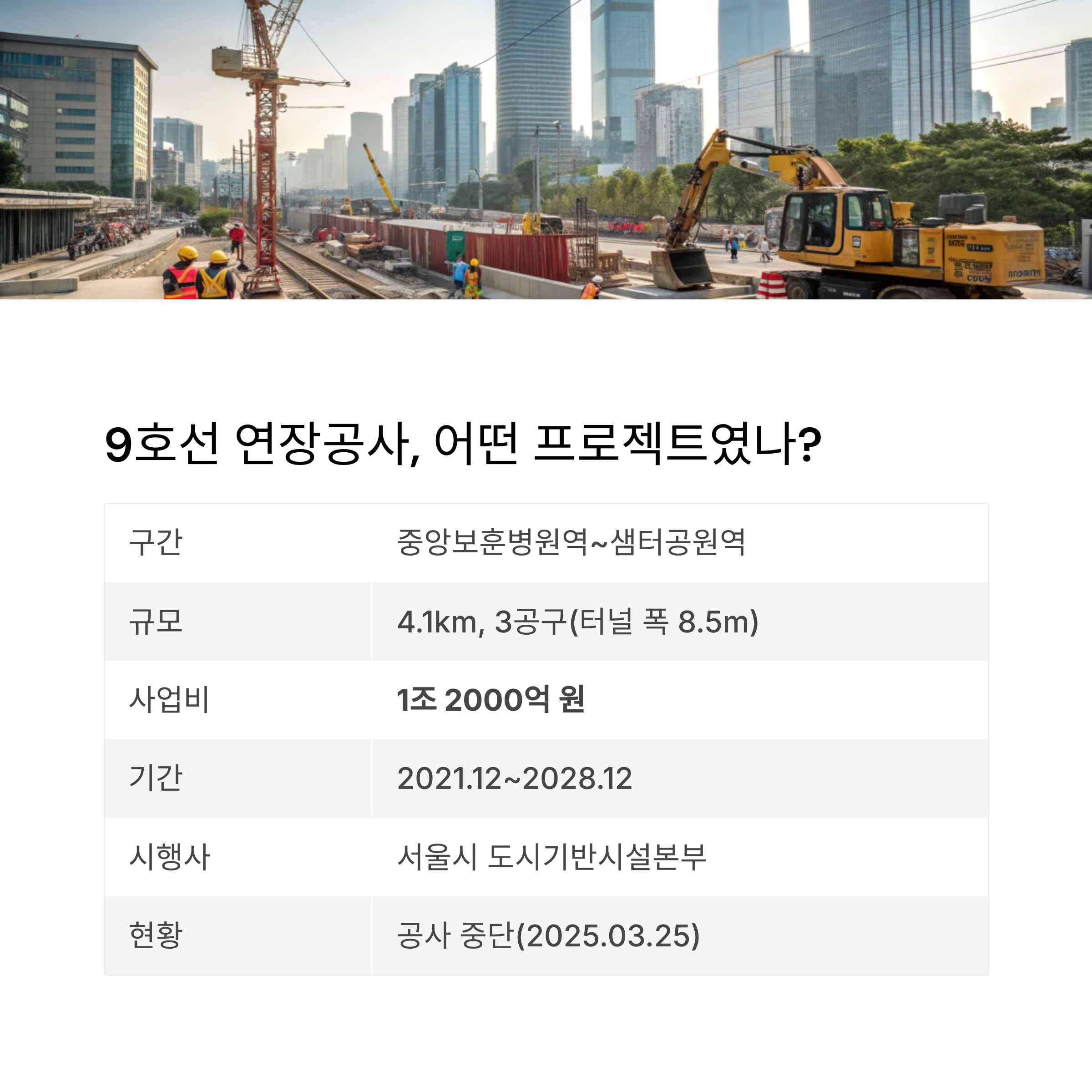 1) 정보: 2025년 9호선 공사 중단 여부와 조사 결과 확인