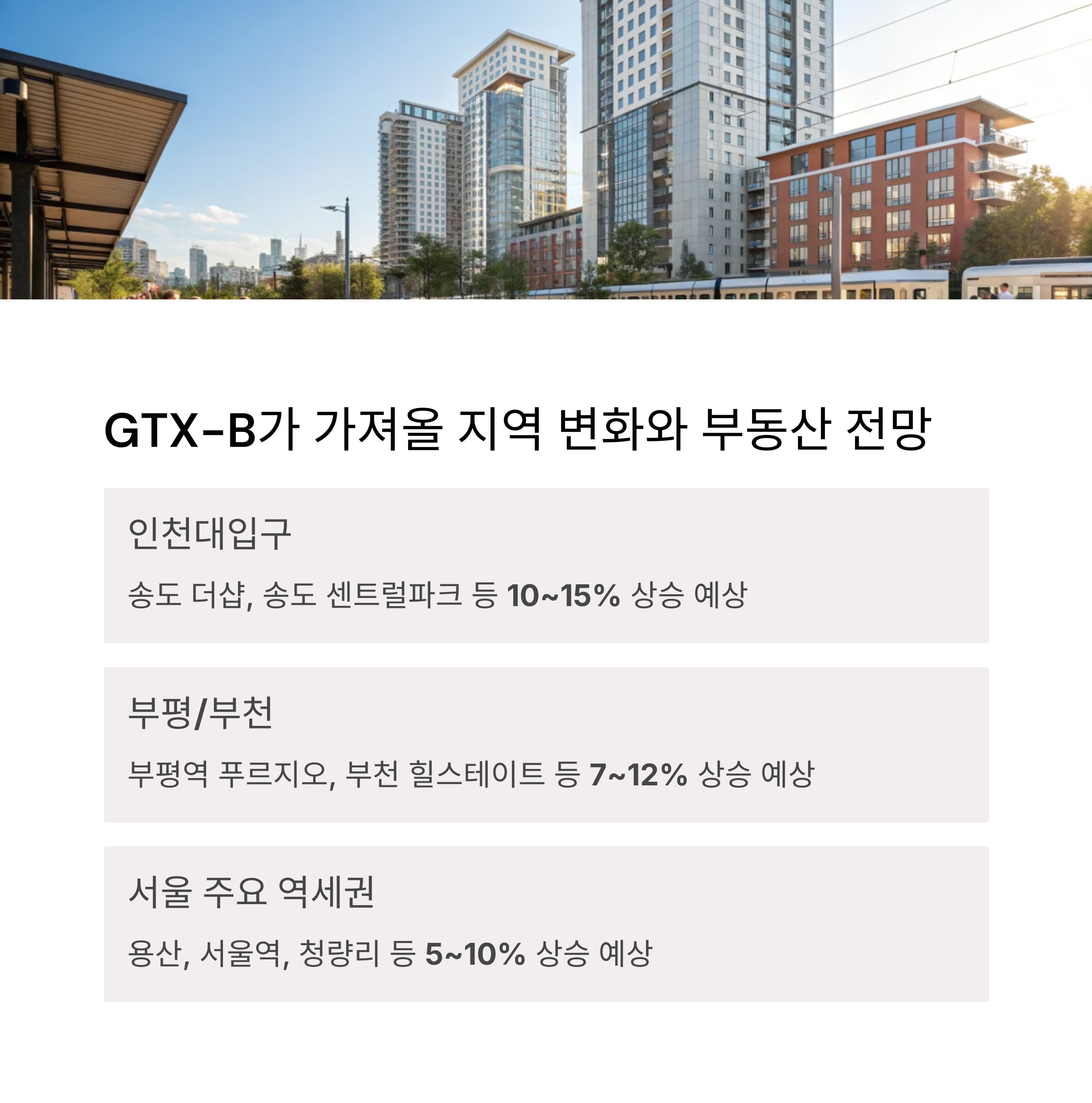 - 교통 전략: GTX-B 노선으로 바뀌는 수도권 교통 대비.